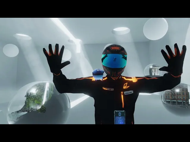 One world expands into a towering painting like canvas: a drifting waterfall, its mist and foliage moving gently in response to wind simulations. Others take unfamiliar shapes. Transparent glass spheres hold miniature splatted scenes, part snow globe, part orb, demonstrating how Gaussian splats handle translucency with a softness. Cylindrical worlds bow outward as users move inside them, their stitched together environments suddenly blooming into more detail, adopting a kind of spatial elasticity.